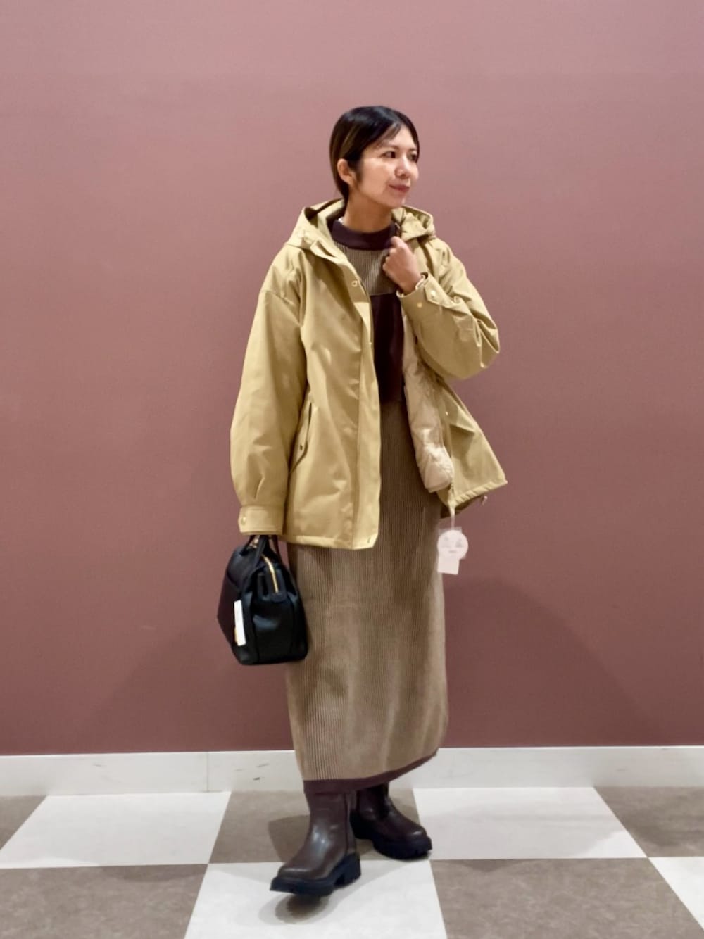 ゆったりしたサイズ感で中にボリュームのある物を着てもごわつかずに着て頂けます!