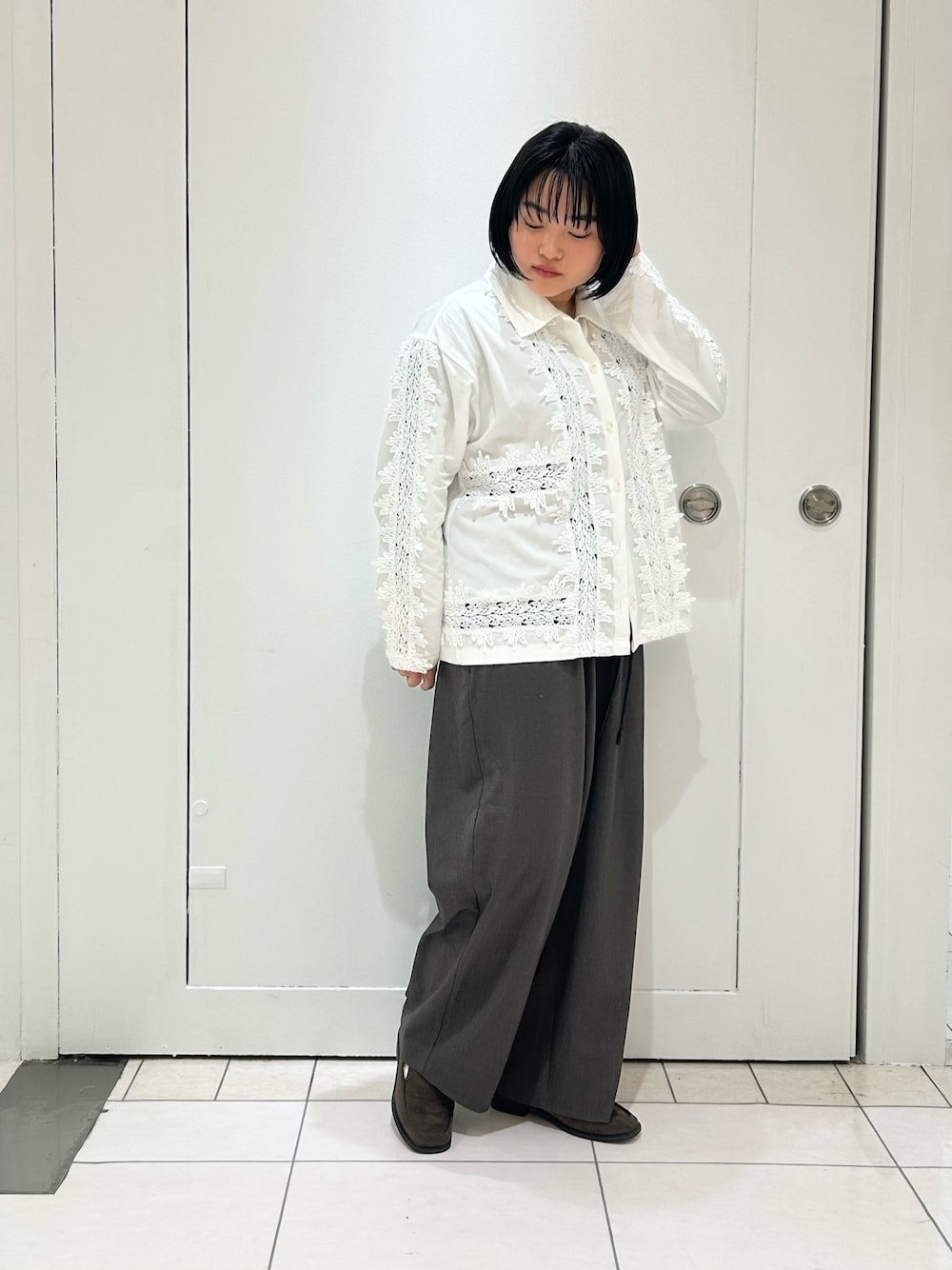 刺繍がオシャレなシャツコーデ!