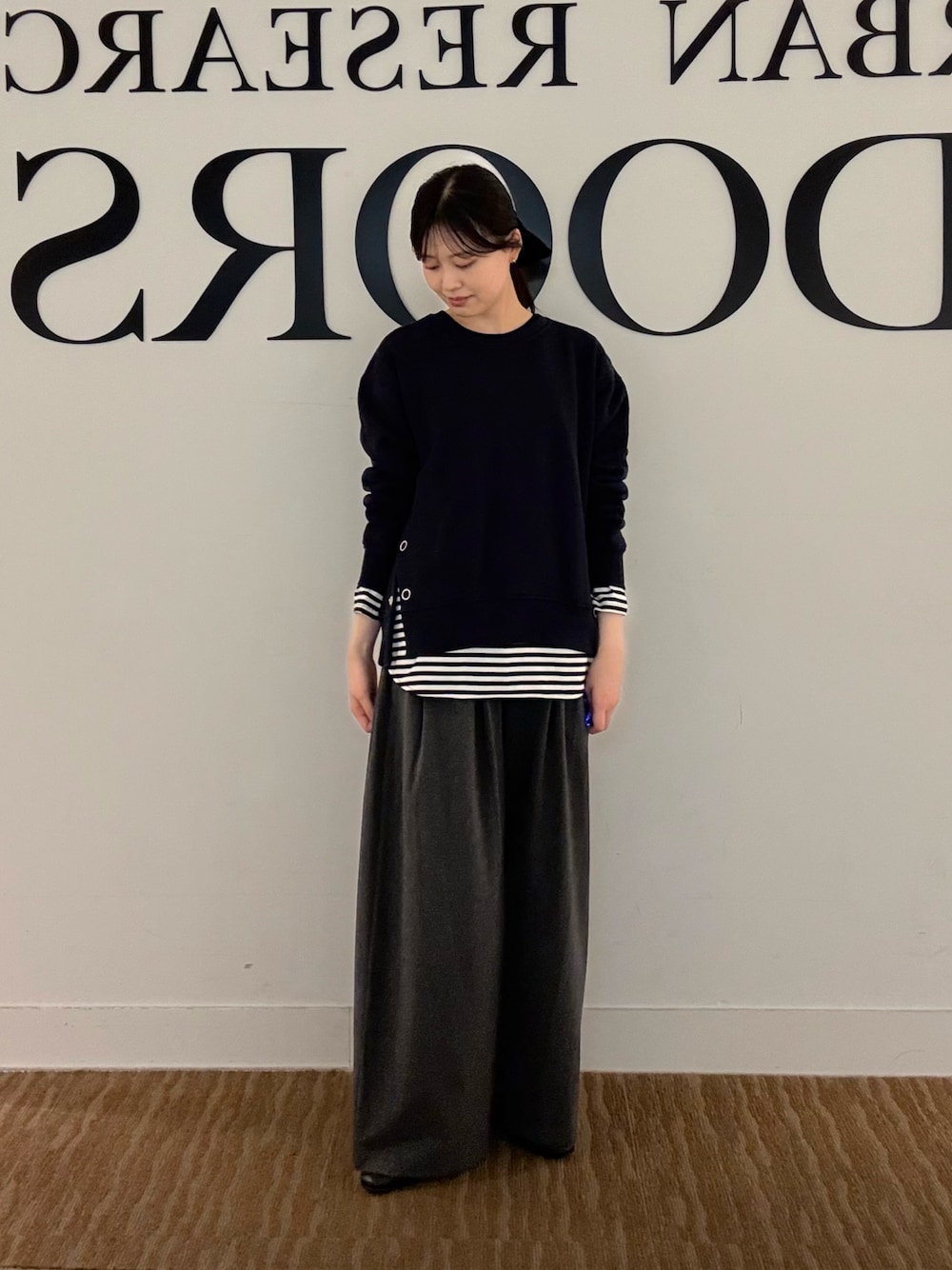 パンツもゆったりと長さがあり少しラフな雰囲気を出しやすいので、普段使いにぴったりです。
