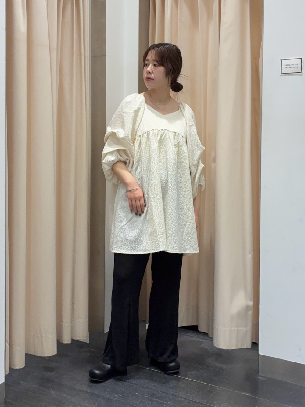 ボリュームショルダーが特徴的なので、シンプルですがおしゃれに着用していただけます!
