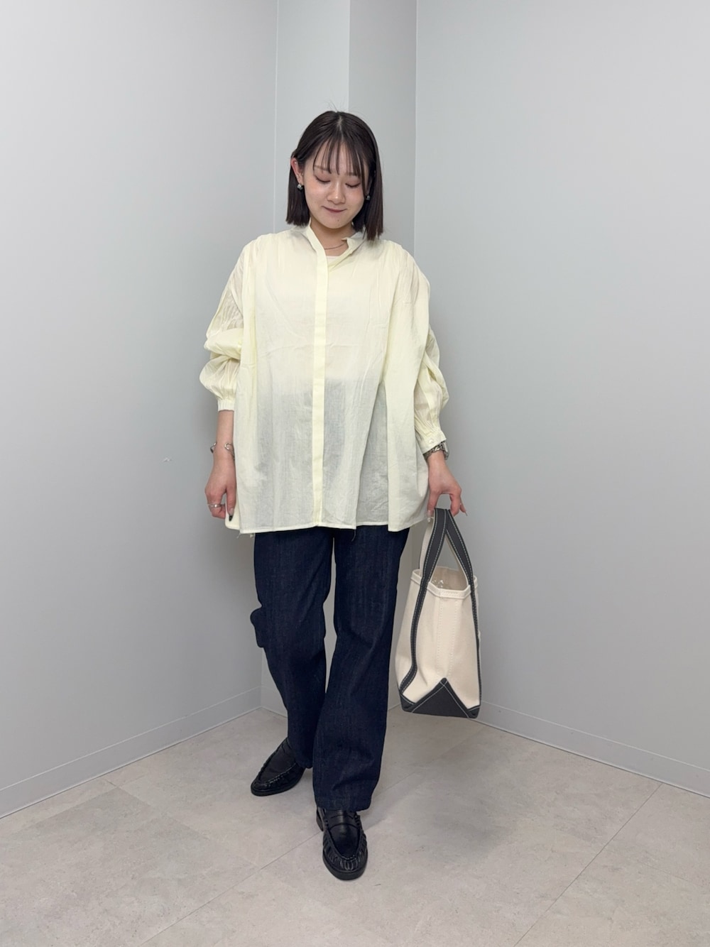 ルーズなシルエットなのでベルトを巻いてメリハリをつけてみました!インナーにロンTやシャツを重ねるのもオススメです♪