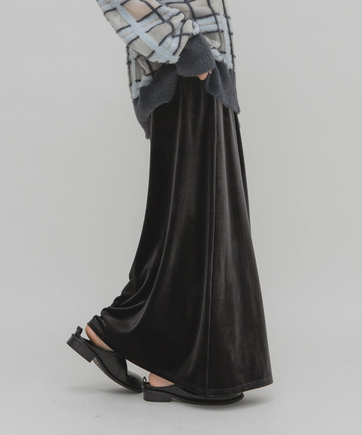 リアルバイのベロアスカートはシルエットも綺麗でスッキリと着ていただけます。