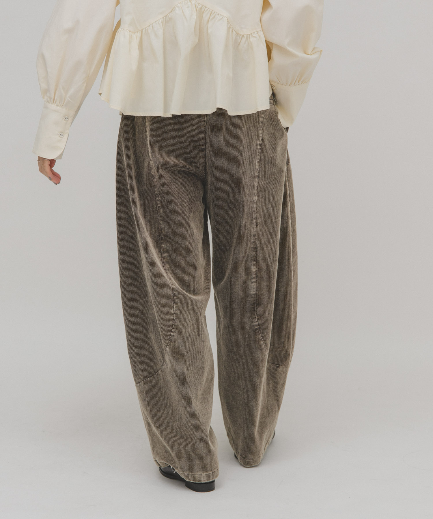紐を自由に結べるトップスにコーデュロイのパンツを合わせました!