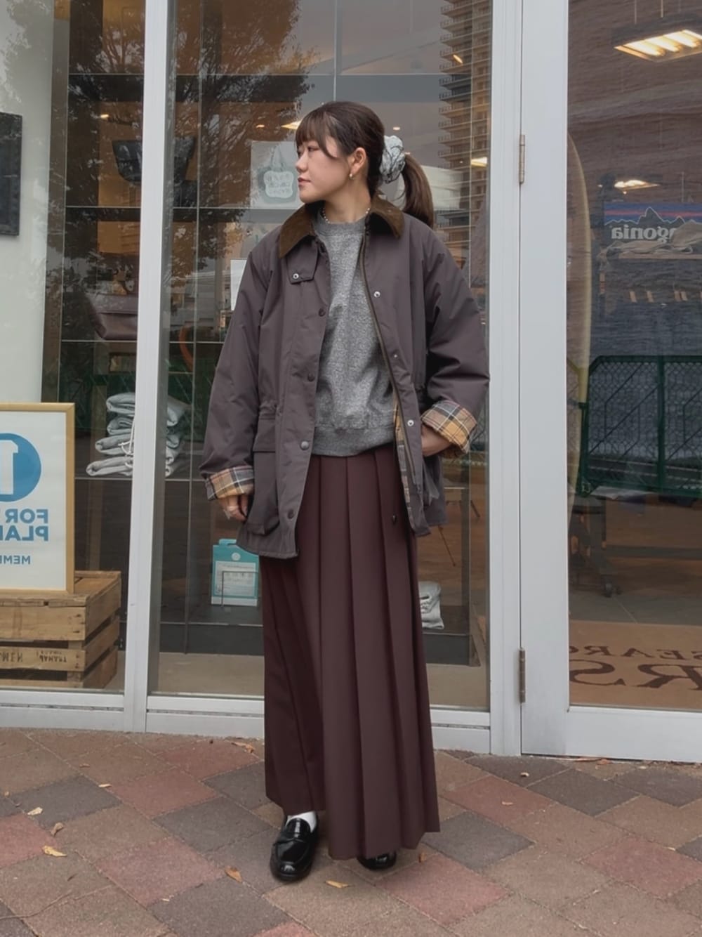 プリーツスカートと合わせて女性らしいをプラスしてみました✨