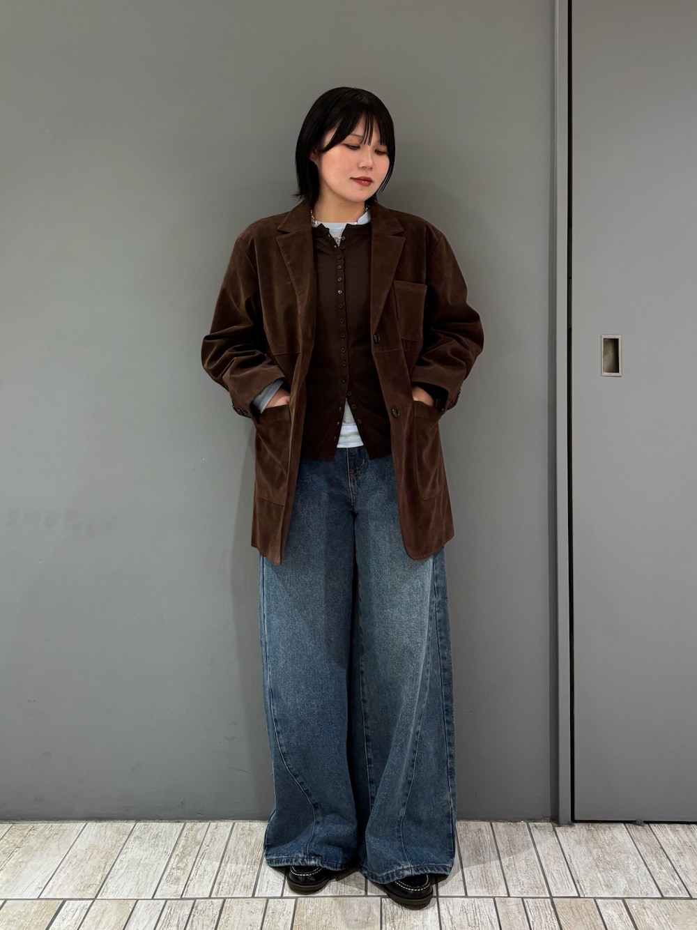 ジャケットはシンプルなデザインでどんなにトップスとも合わせやすく、程よくオーバーサイズですが首元がしっかりVネックで縦ラインを強調してくれるので骨格ストレートさん優勝の形です✨