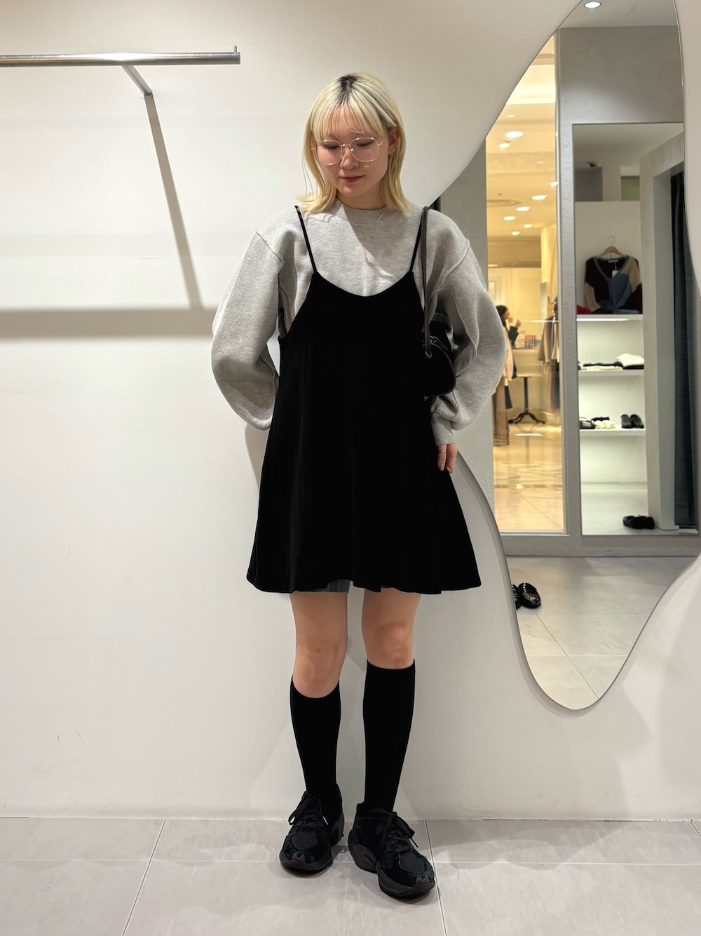 モールリブミニキャミワンピースは長さ調節が可能でワンピースの上にスウェットなどを合わせてミニスカ風に着るのも可愛いです🤎