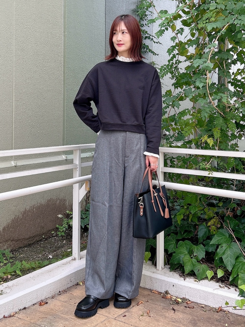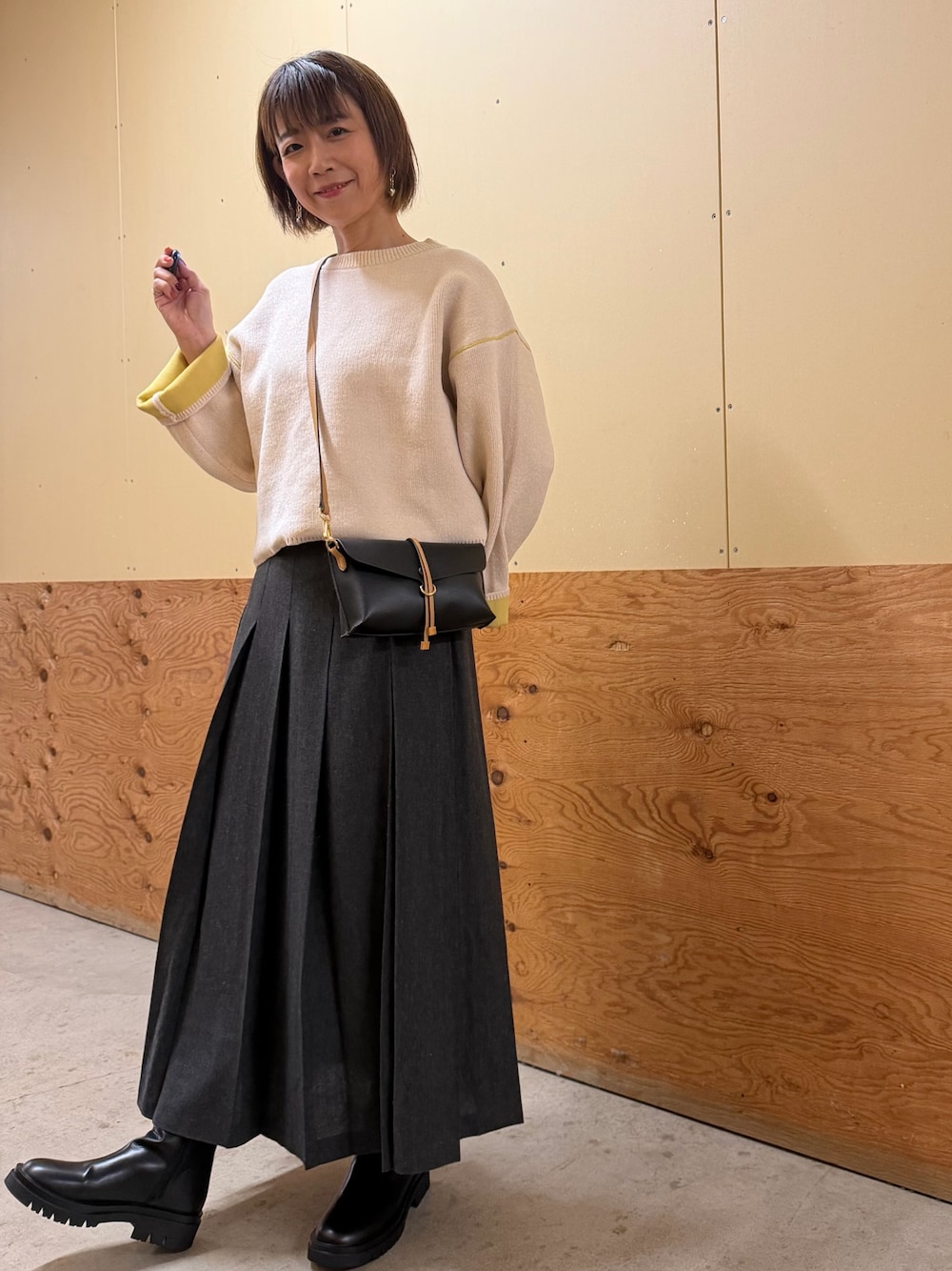 秋冬はざっくりニット合わせで、春先はカットソーで軽やかに着回せます。