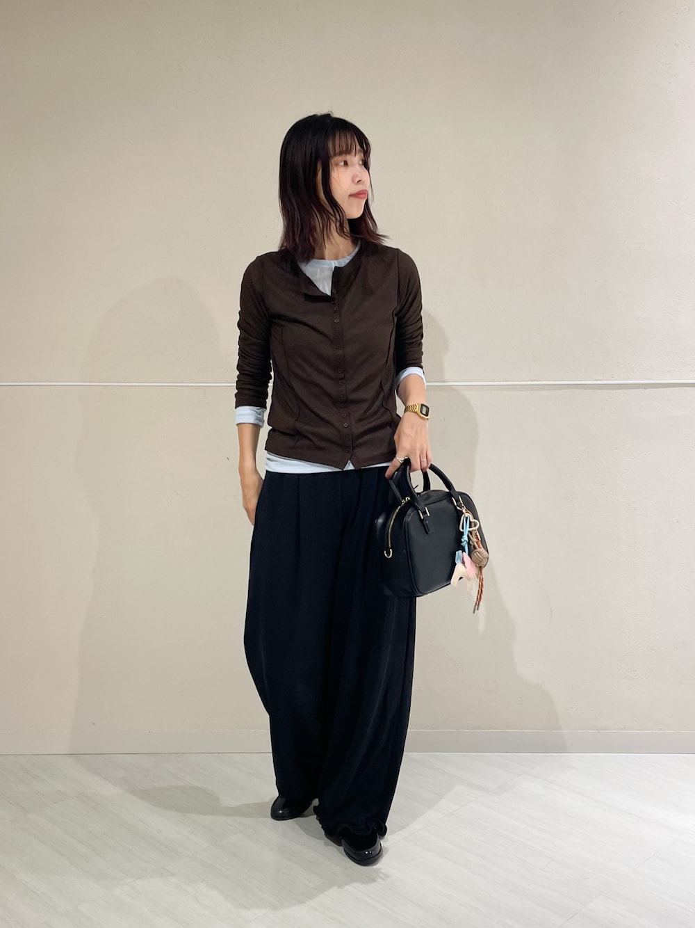 パンツはどんなコーデにもハマる1ので着回し抜群です!ウール混なので気温が下がっても安心して着用できます♪
