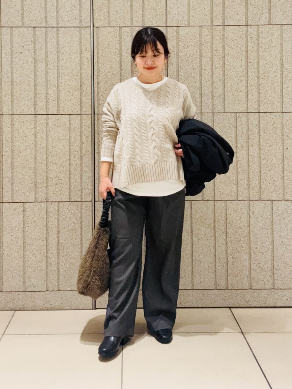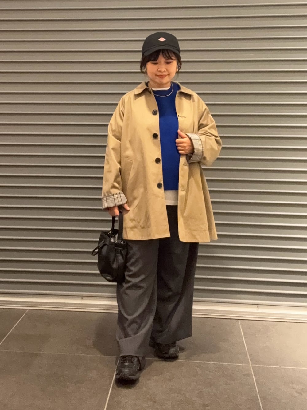 キャップに完声パンツで休日ラフコーデにしました。完声パンツはワイドシルエットが可愛いです。9分丈なので、着丈気にせず着れて小柄な方にもおすすめです。秋冬はブーツ合わせも。