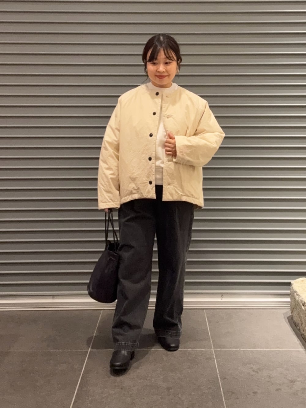 柔らかい素材でとても着やすいです。身幅はゆったり、着丈はコンパクトなので着回し力抜群です。