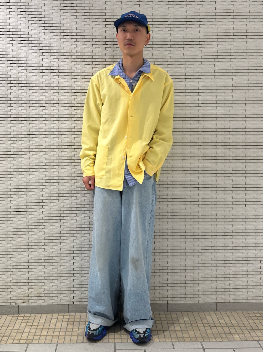 〇こちらのジージャンはミニマルなデザインになっていてキレイめから今回のように柄物をインナーにいれてもうるさくならないのが嬉しいポイントです!