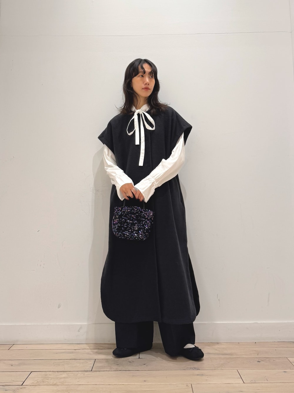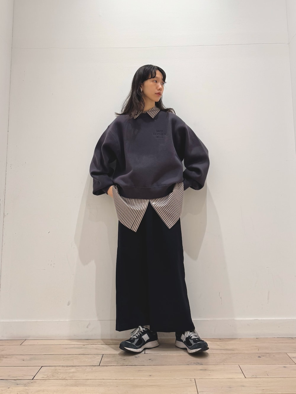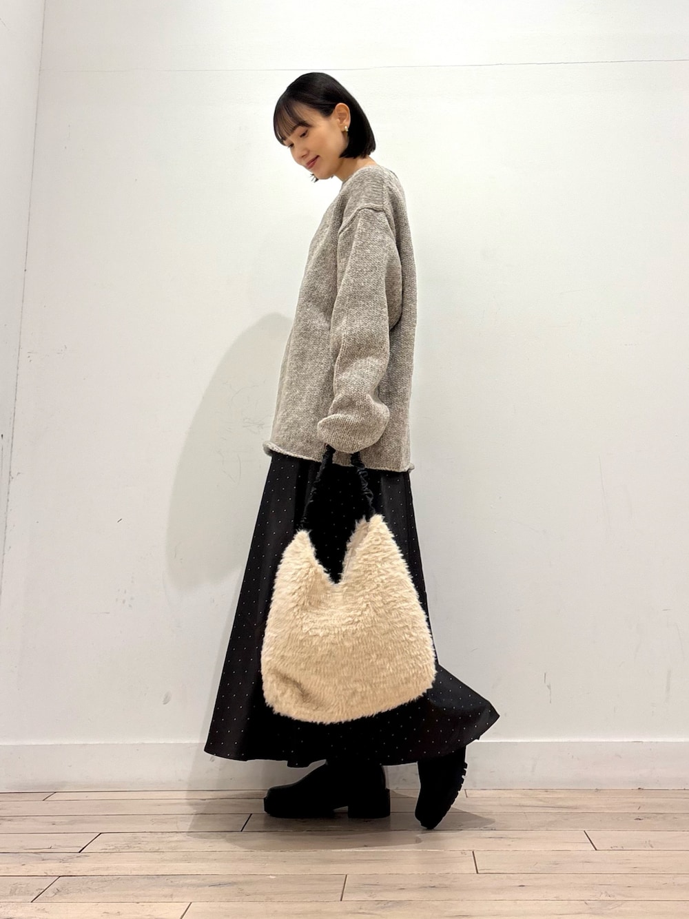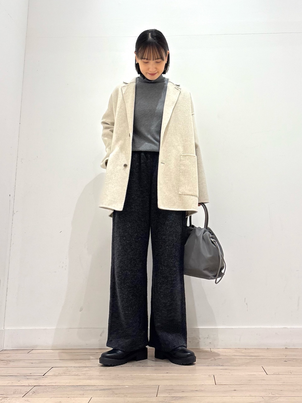 スカートはウールライクで季節感がありつつもイージーケアな嬉しいアイテムです!ウエストもゴムなので楽ちんです◎
