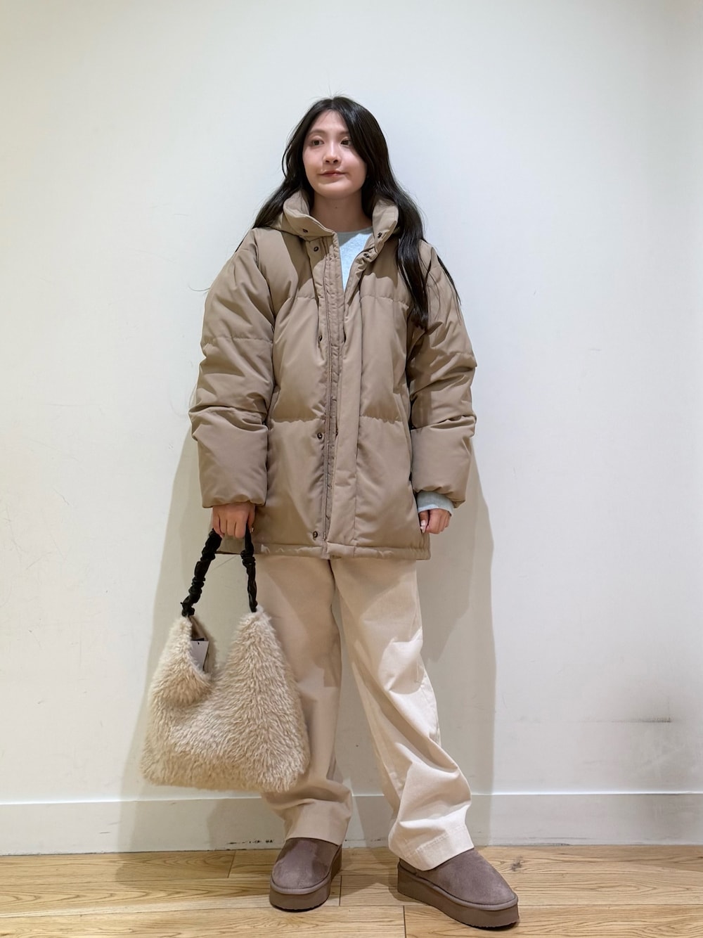 ウールリバーミドルガウンコートは、ワンピースやスカートともパンツとも相性が良く、ゆったりめなので中にたくさん着込めます!