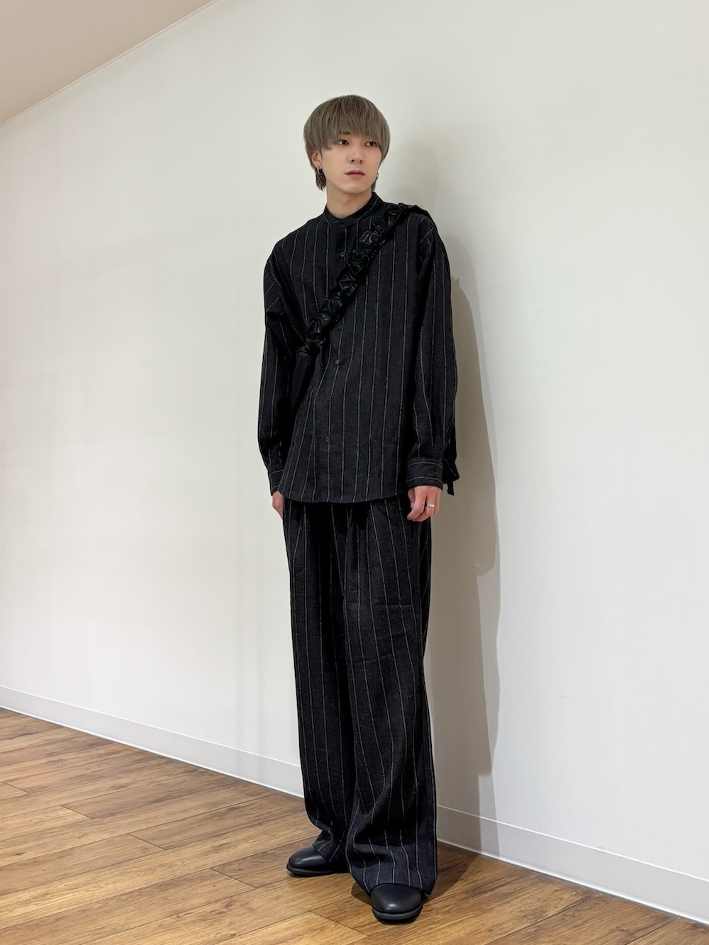 SENSE OF PLACEウールタッチストライプバンドカラーシャツ- 着用カラー: