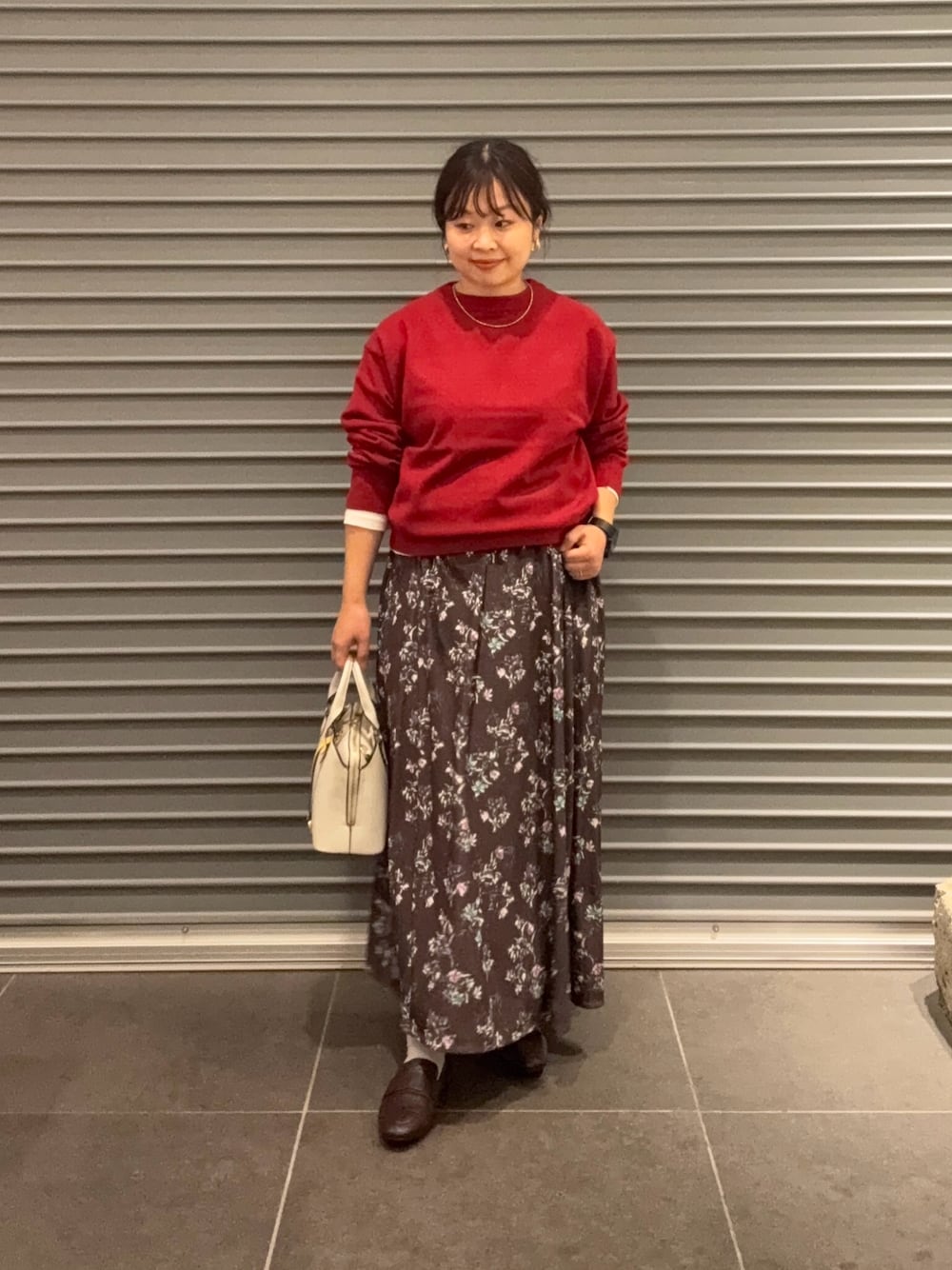 グレー×ピンク×カーキで秋冬カラーコーデにしました。ニットはゆったり着れて脇スリットが入ってるので、お腹周りもマタニティでも大丈夫でした。