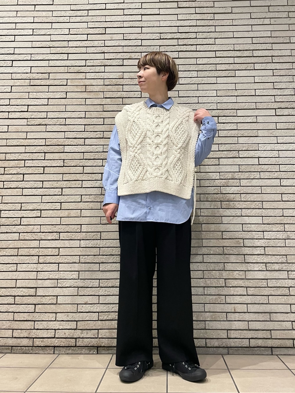トップスがゆったりしているのでタイトスカートを合わせてスッキリとさせました。