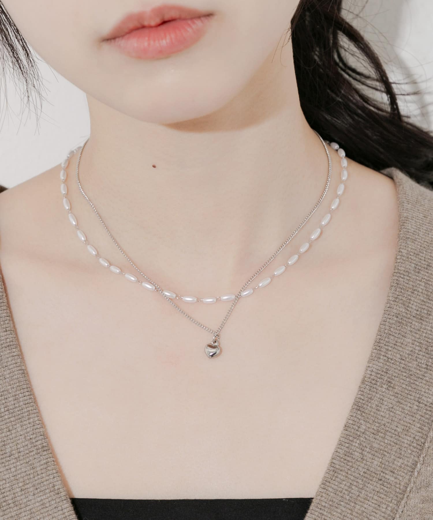 SMELLYステンレスハートトップパール2セットネックレス- カラー: