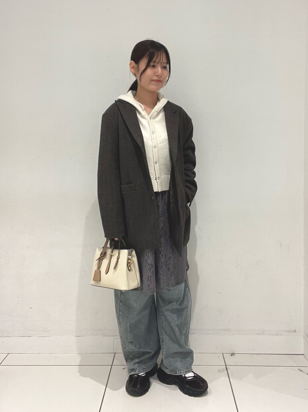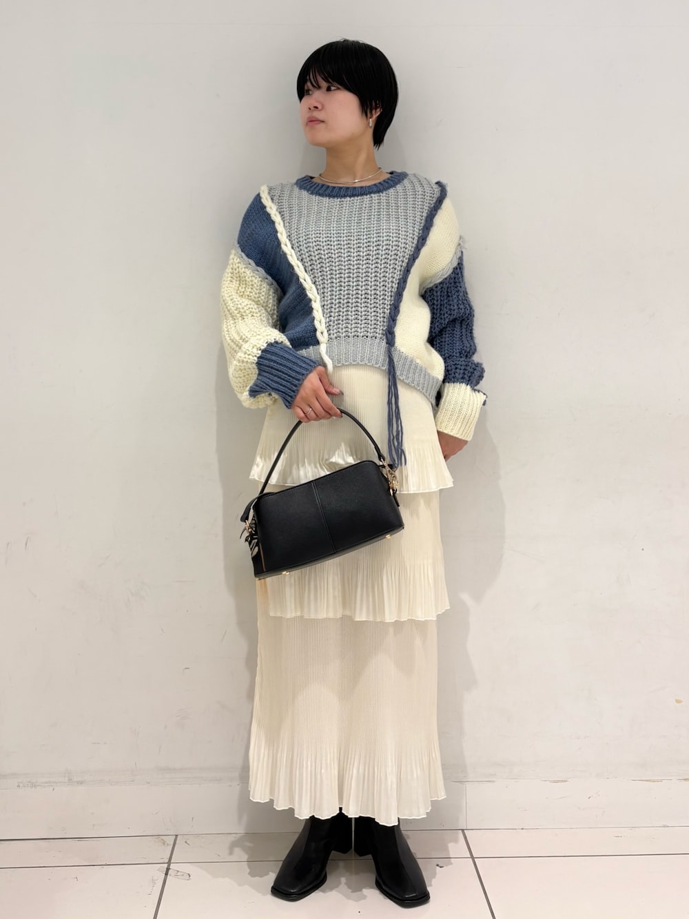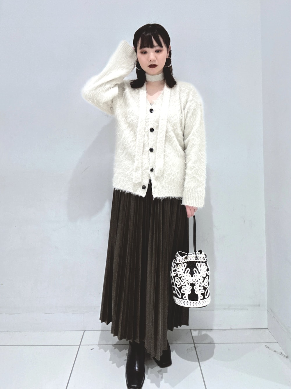 柄に入っている色を拾う形でボトムスを合わせてあげるとまとまりよくなりますよ~(ᵔ֊ᵔ)
