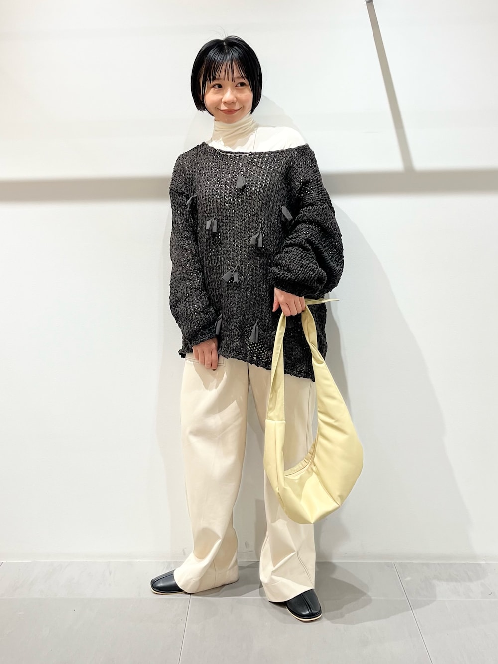 ボリュームが可愛いとはいえ着痩せを狙って、トップスもボトムスもグレーで統一しました。