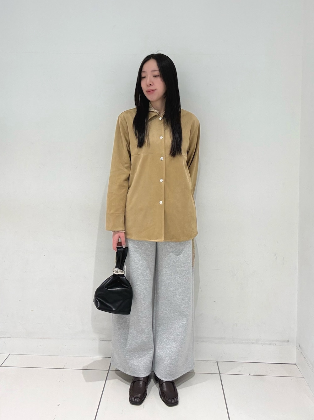 ミックスシャギーのニットと起毛のスカートを使ったあたたかキレイめコーデです❕