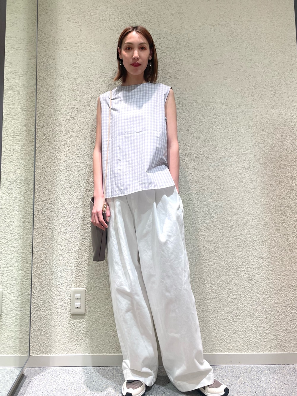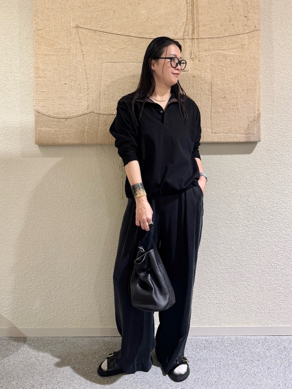 ウールフラノタックワイドパンツ、意外にも少しソールの厚みのあるシューズだとそのままで着用できました🙌
