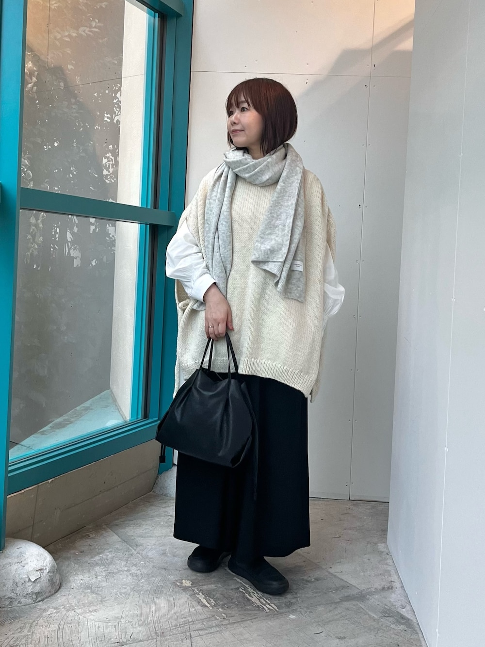 アームホールや肩周りにもゆとりを持たせているので、冬のボリュームトップスの上からでも難なく羽織れます。