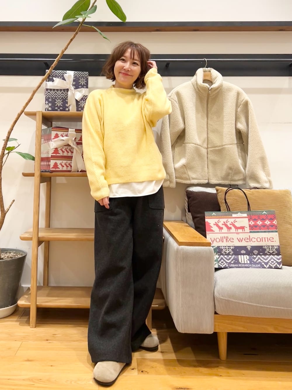 柄は落ち着いたトーンなので派手になりすぎず、いつものパンツやスカートに合わせるだけで一気に冬らしい雰囲気になります!