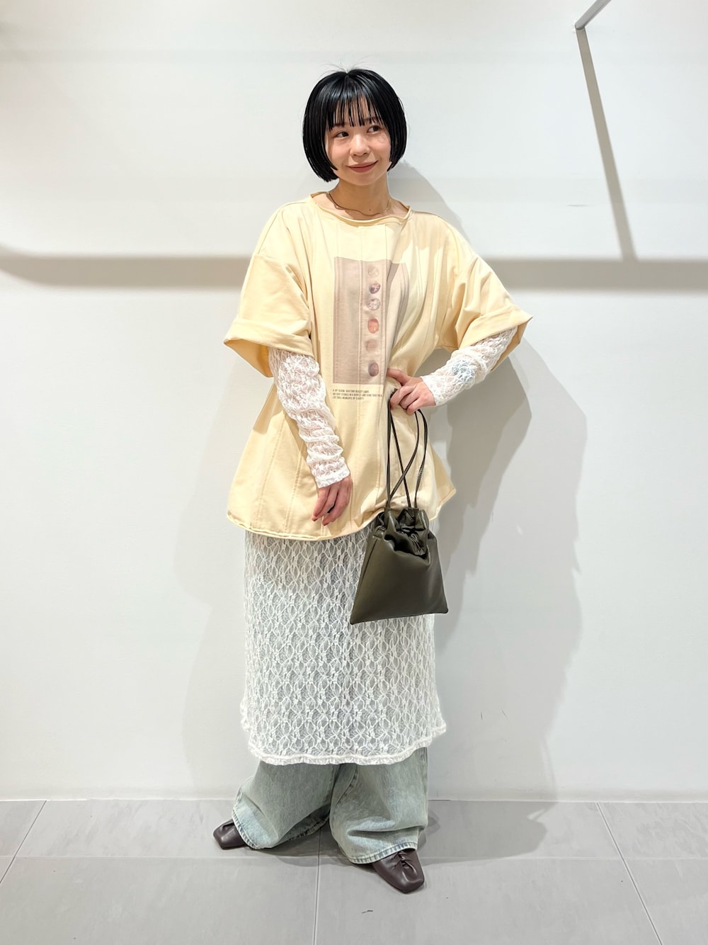 ニットとは違うゆるめなアイテムを合わせるのもおすすめです!