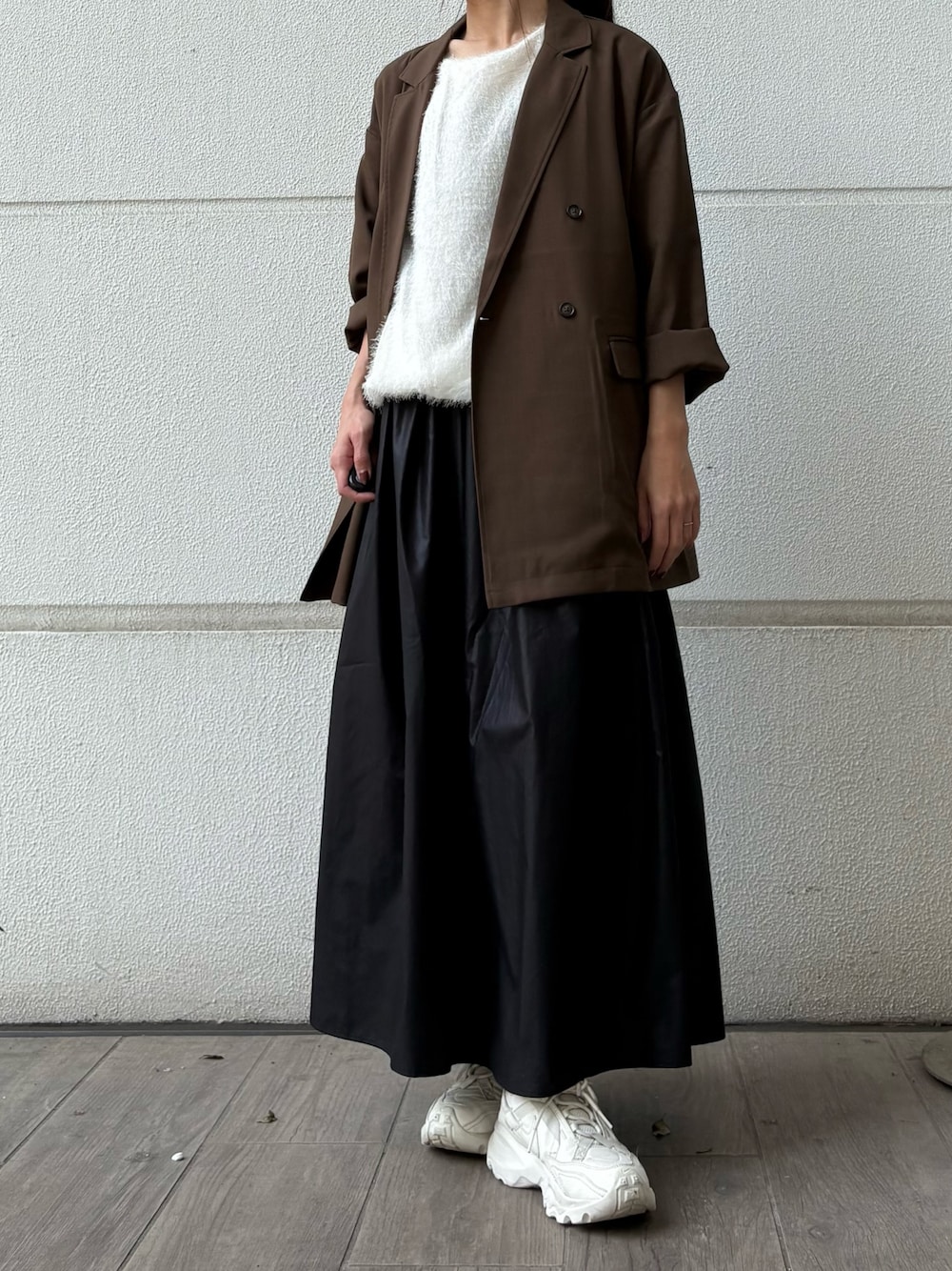 色合いはモノトーンでも、素材や形でアクセントを着けるとオシャレに見えます🎶