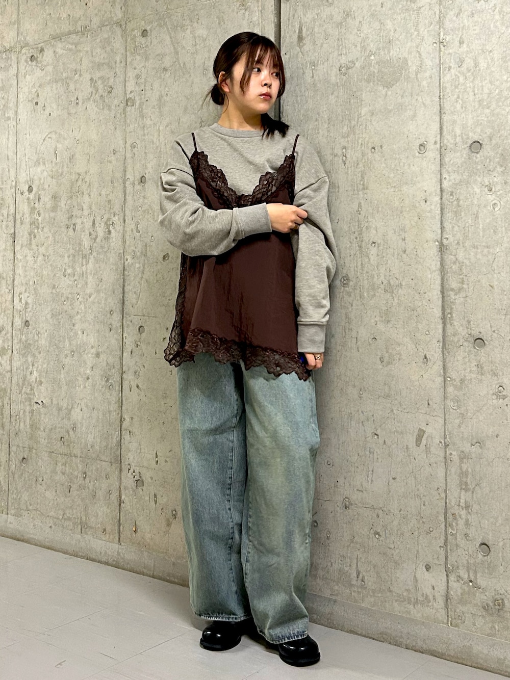 ジャケットはベロアと袖口のレースが可愛く、オーバーサイズでゆったり羽織れて◎
