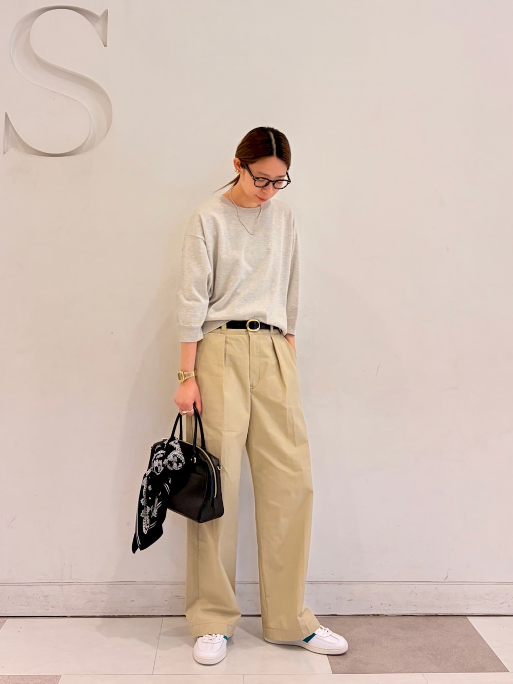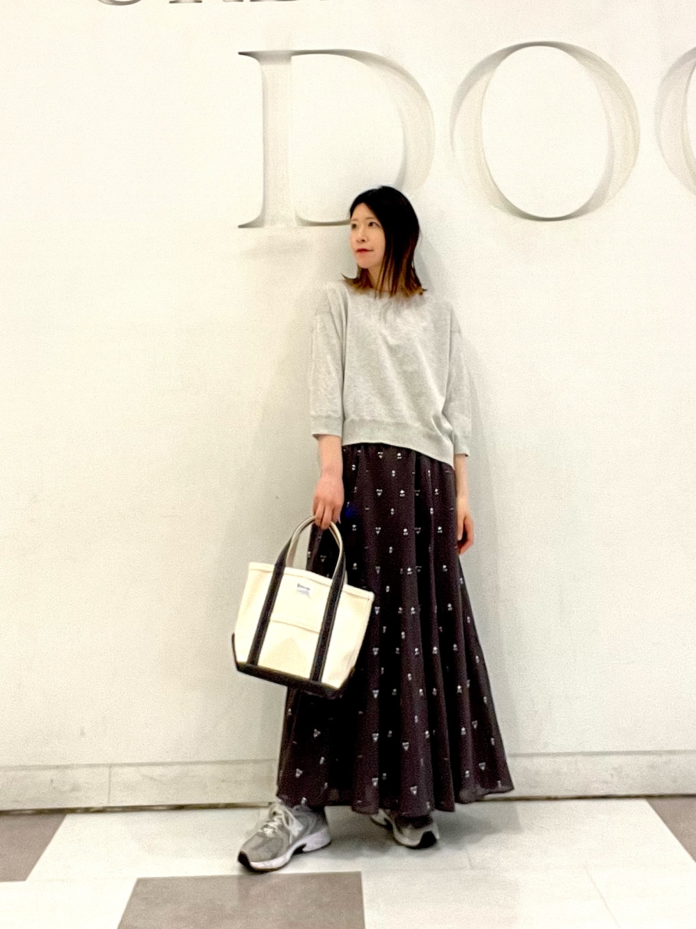 サロペットは落ち感のある素材なのでゆったりシルエットですがすっきり見えます◎深めのUネックなのでインナーのデザインで雰囲気を変えて着ていただけます!