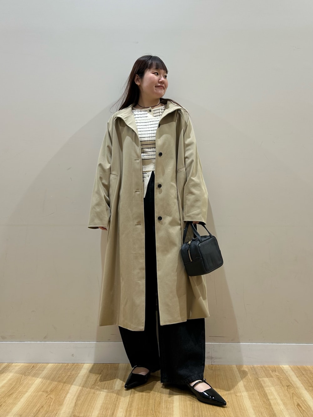 今回はニットをタックインしていますが、ウエストポーチでニットを固定してタックイン風にするのも良いかと。