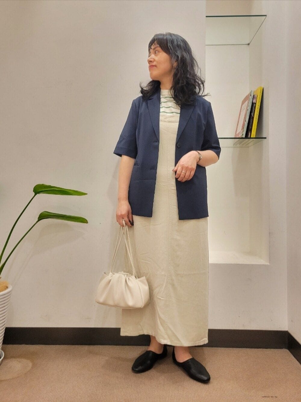 ジレはゆったりで着丈長めで