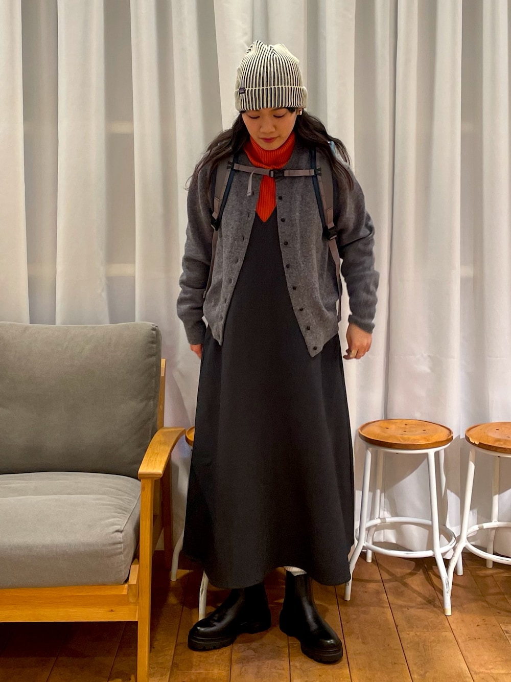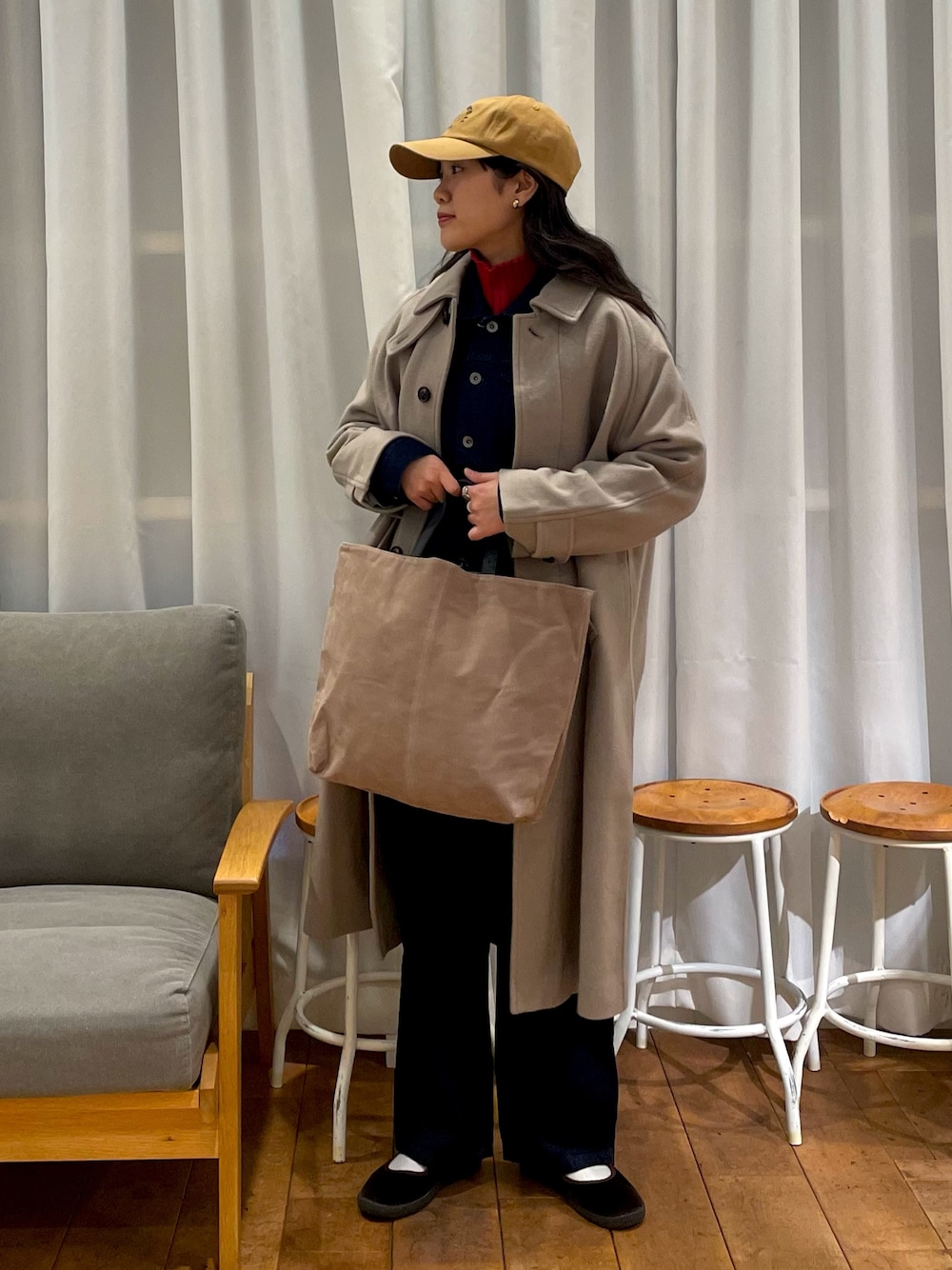 アウターはカーキで中のアイテムたちと喧嘩しないように