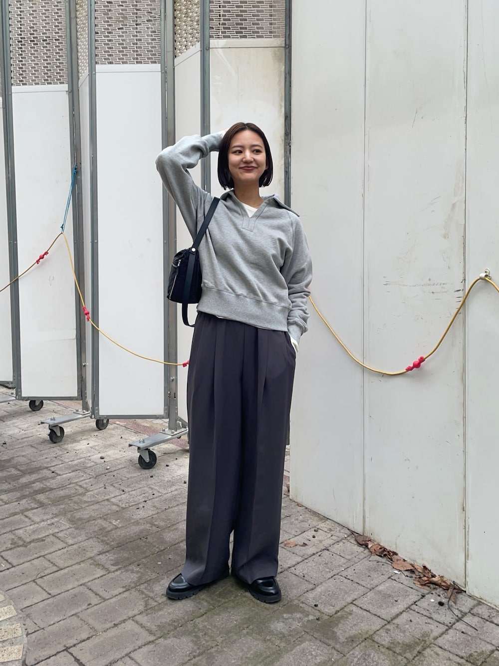 パンツはタックギャザーストレートパンツで、裾上げお直ししたリアルバイのアイテムです!私の身長で8センチ裾上げしてます!ワイドだけど、キレイなシルエットがおすすめです♪