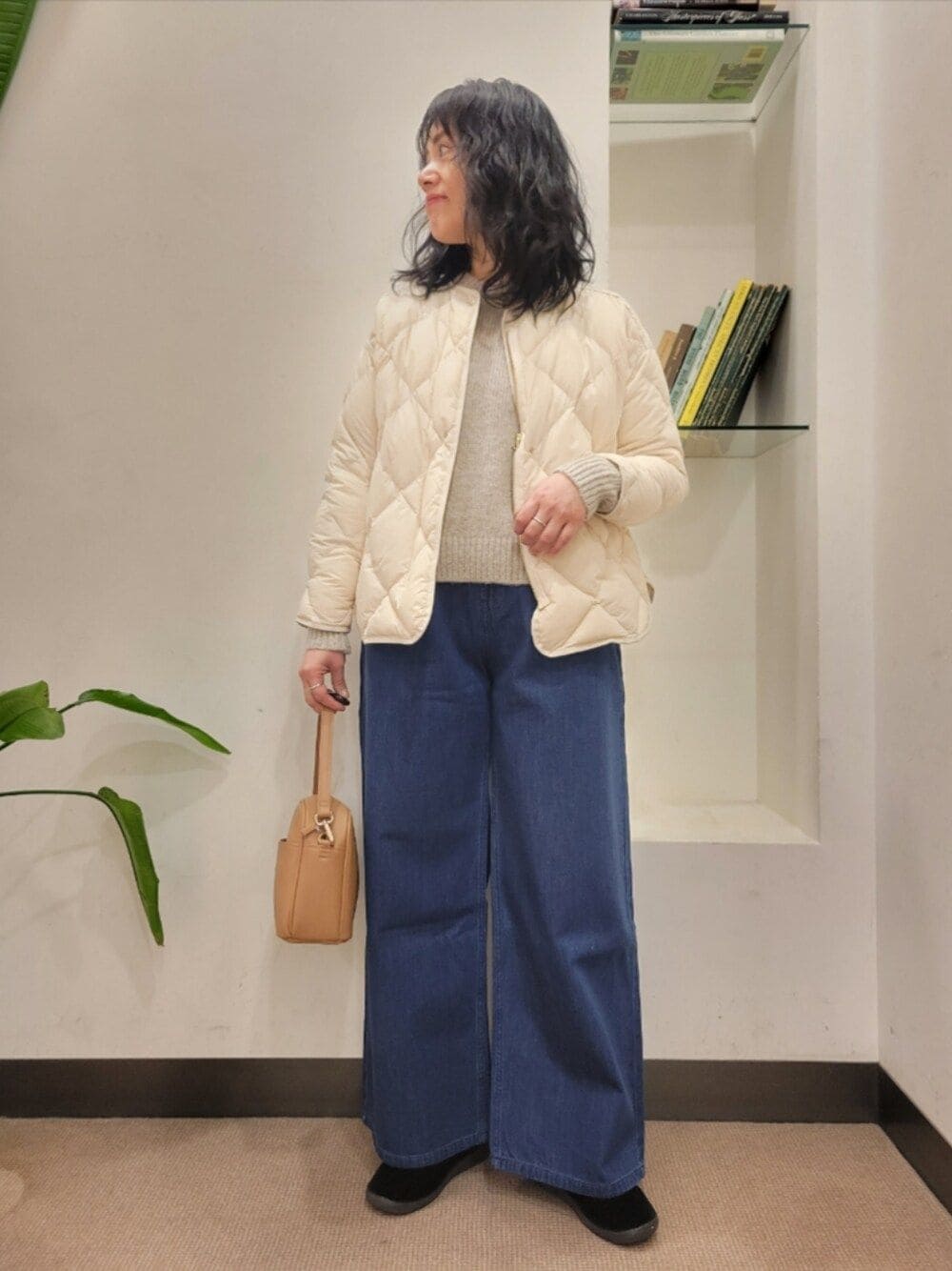 ニットのインナーはシアー系、ロンTEE、シャツなどなんでも合います。