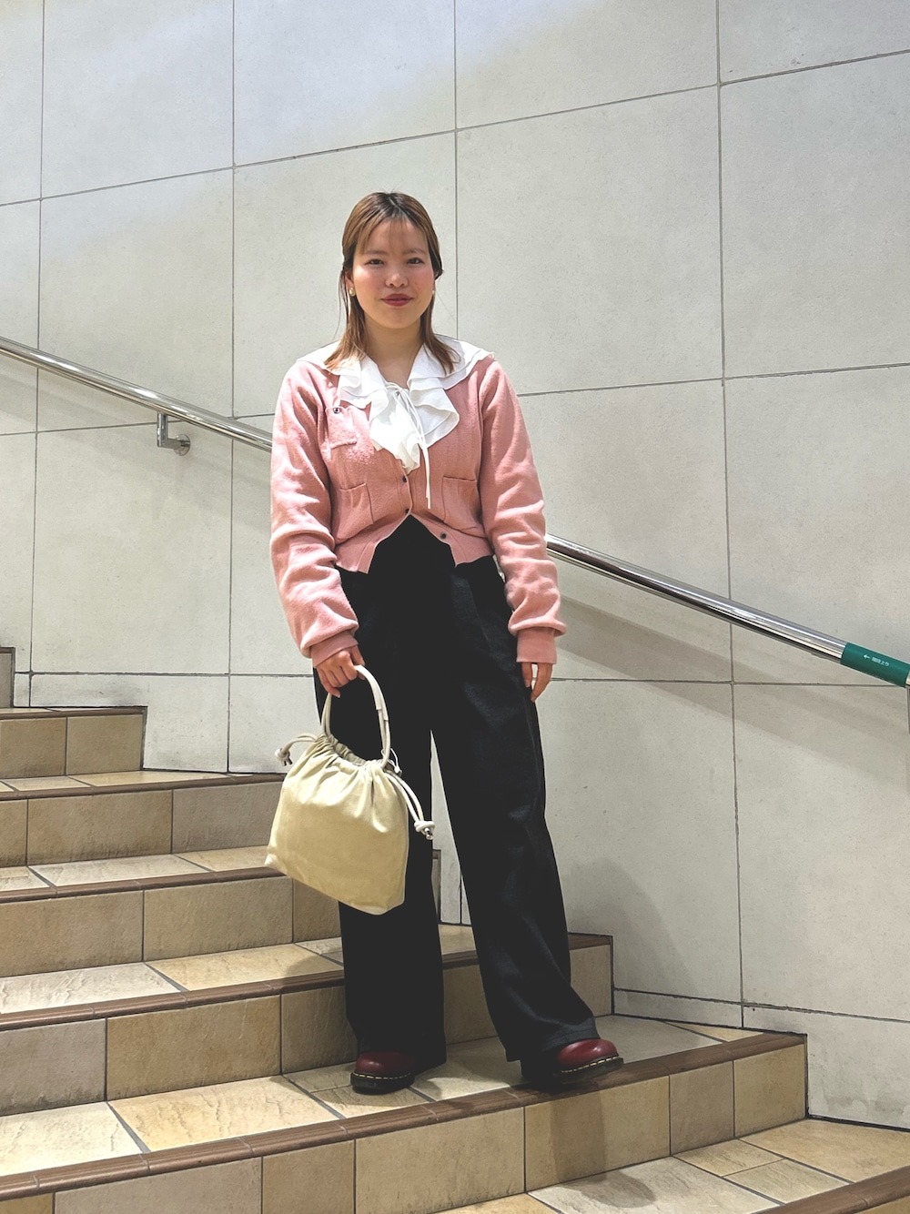 シンプルなコーデに、春っぽい鞄を合わせた春コーデです!