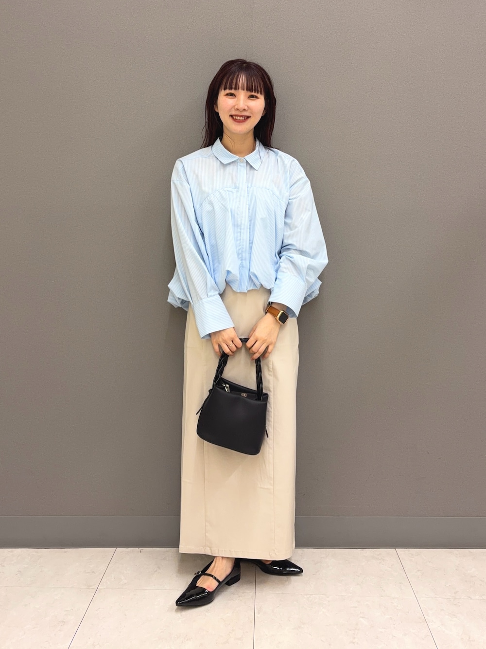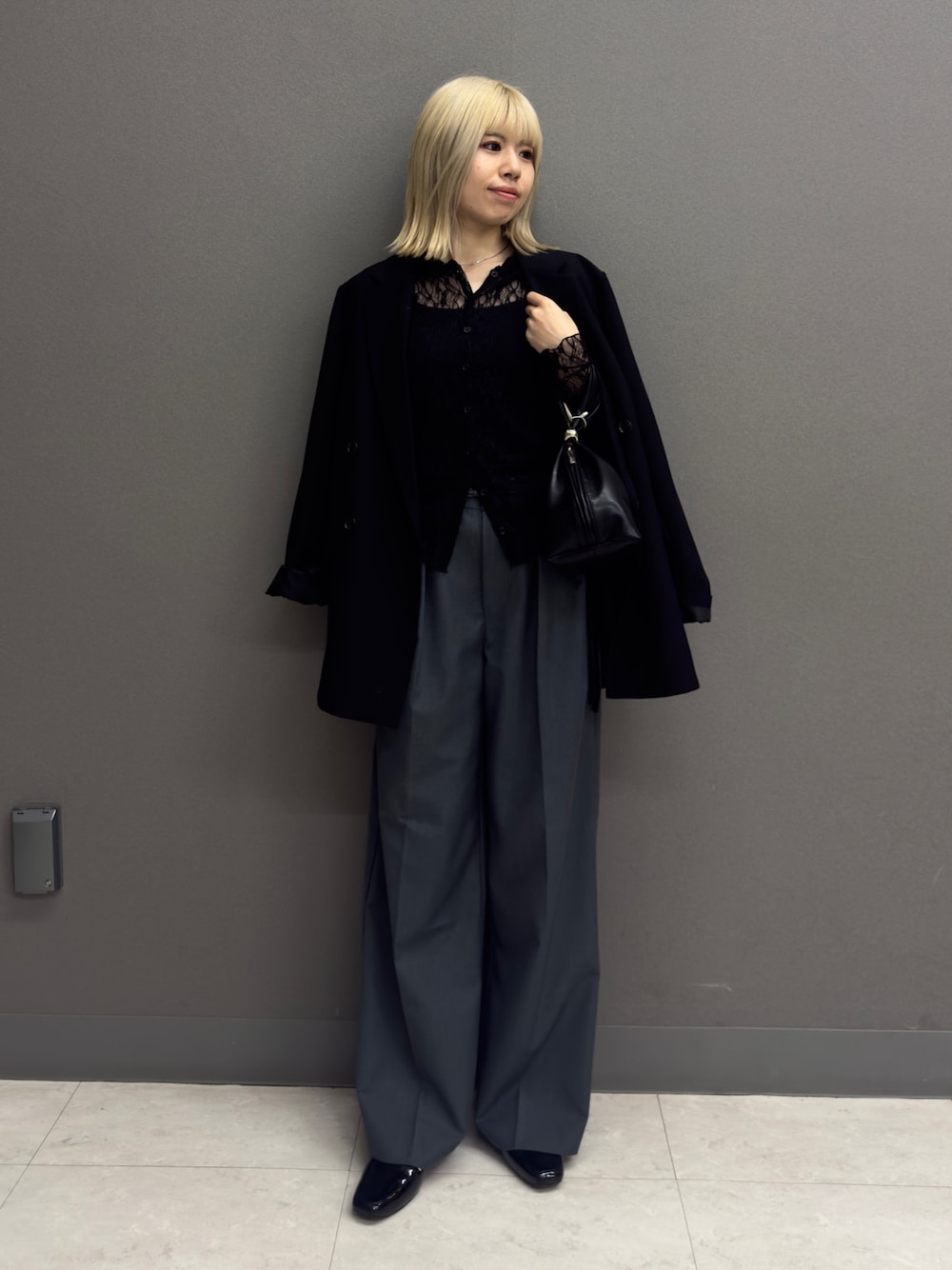 パンツは生地感しっかりめで、丈感が他のパンツと比べて短めなので、153cmの私でもヒールなしのシューズでも引きずらずに履いていただけます🎵シャツはショート丈なのでスタイルアップ間違いないです☝🏻