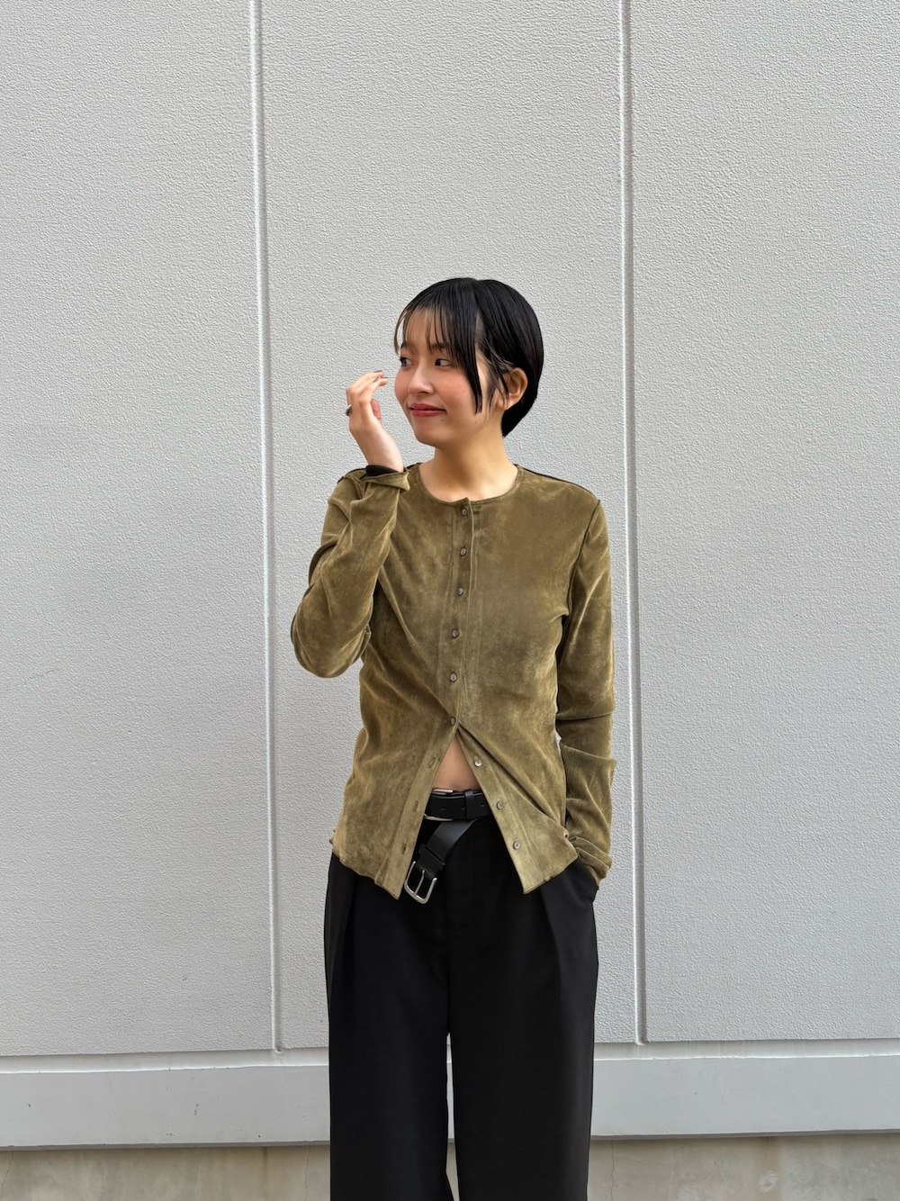 オールブラックの中でも質感と風合いを変えることを意識して組んでみました。