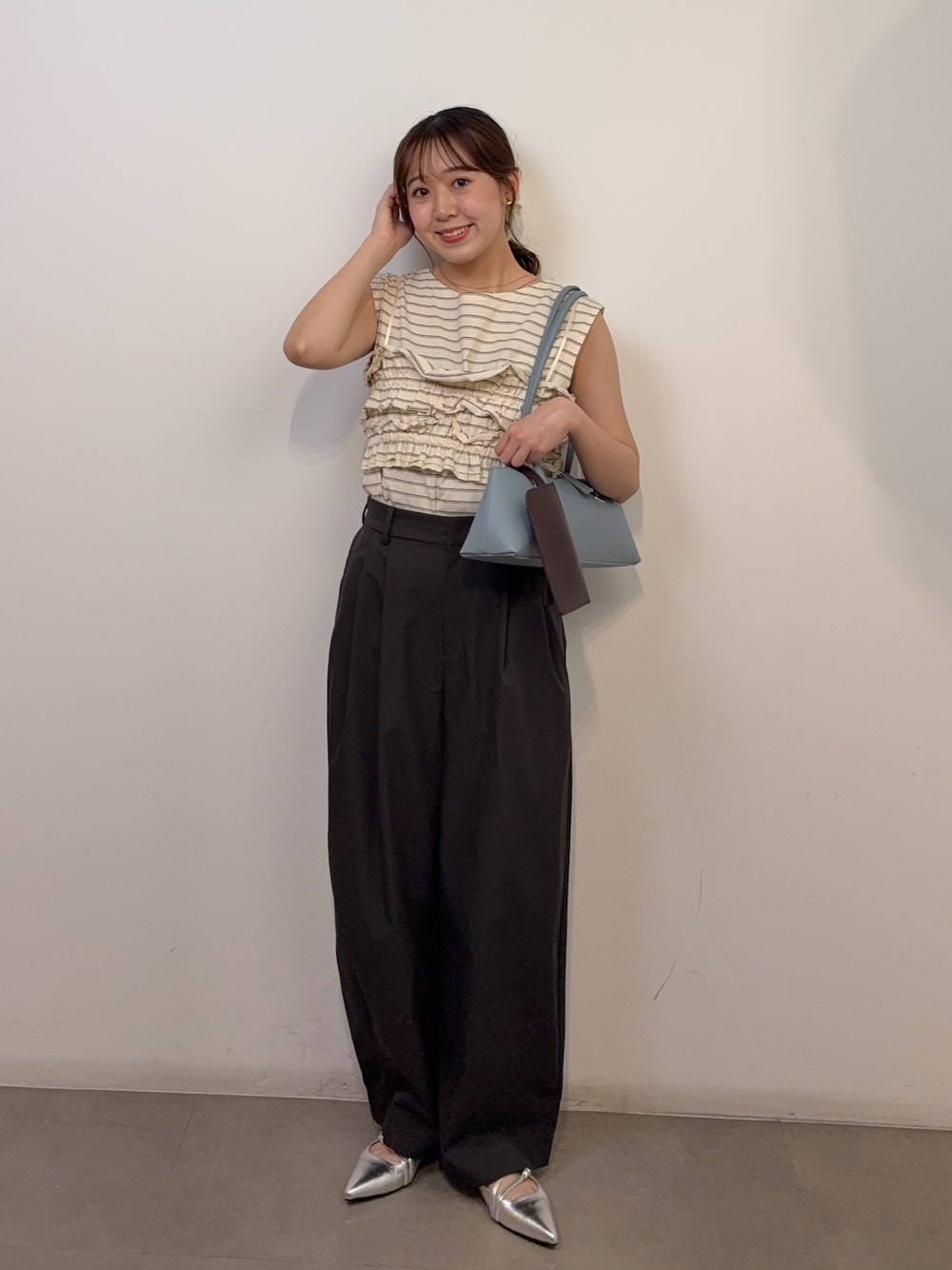 パンツはワイドストレートなので体型カバー効果も🙆‍♀️