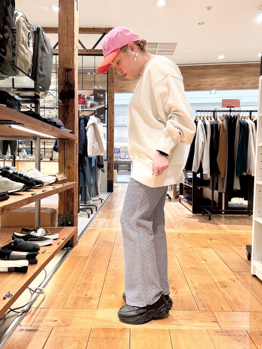トップスはボーダーのゆるいカットソーに