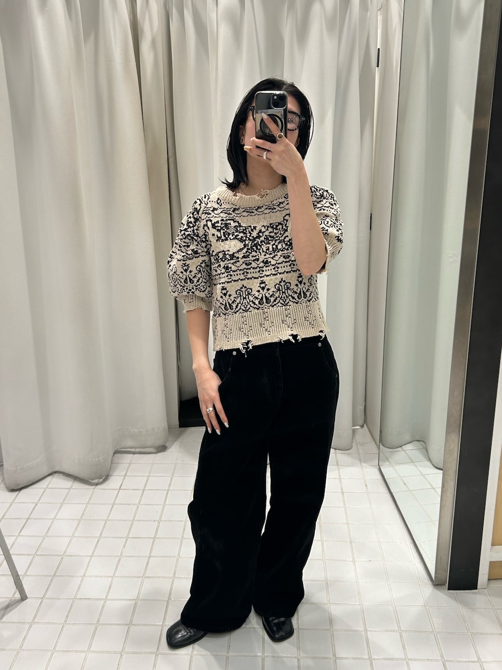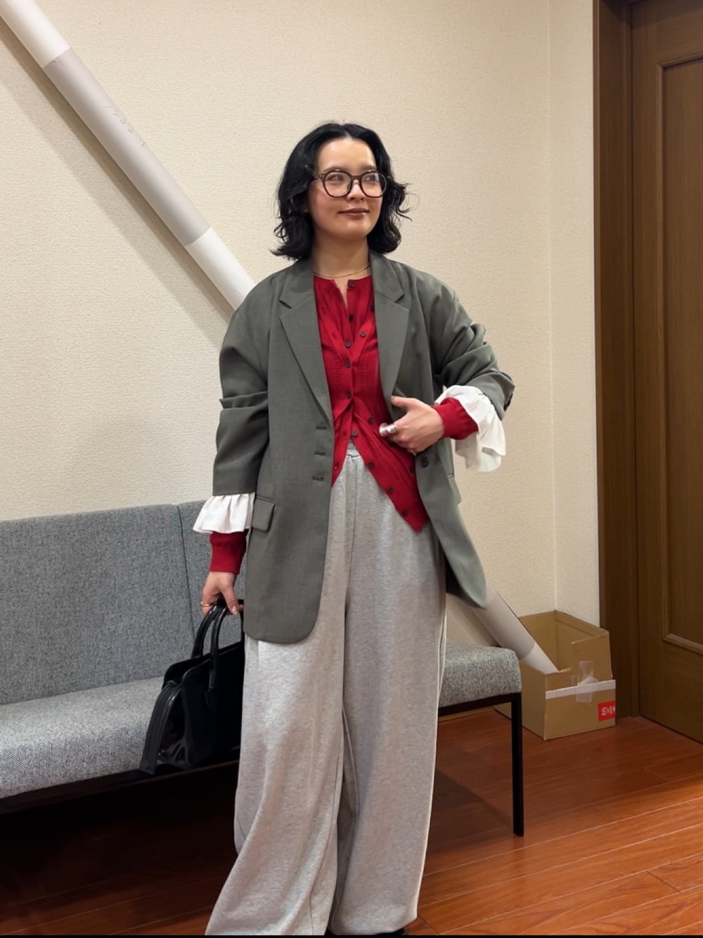 トップスは、デコルテがすっきり見えるロンTにビスチェがセットになっており、1枚でおしゃれ見えするアイテムです✨