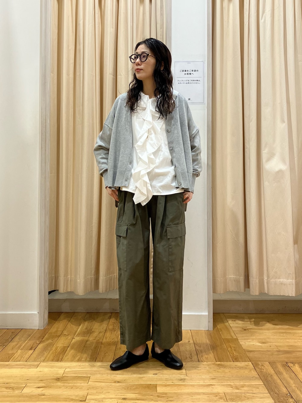 広がりすぎないシルエットで、体型や身長問わずに着ていただけますよ◎