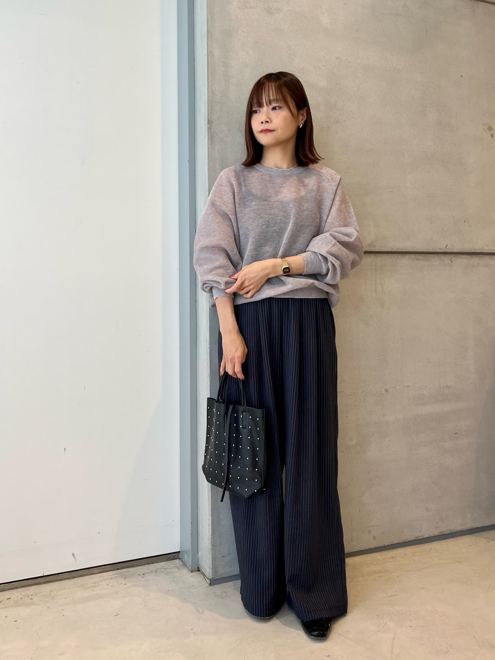 サテンのスカートとあわせて女性らしいスタイリングにしました。