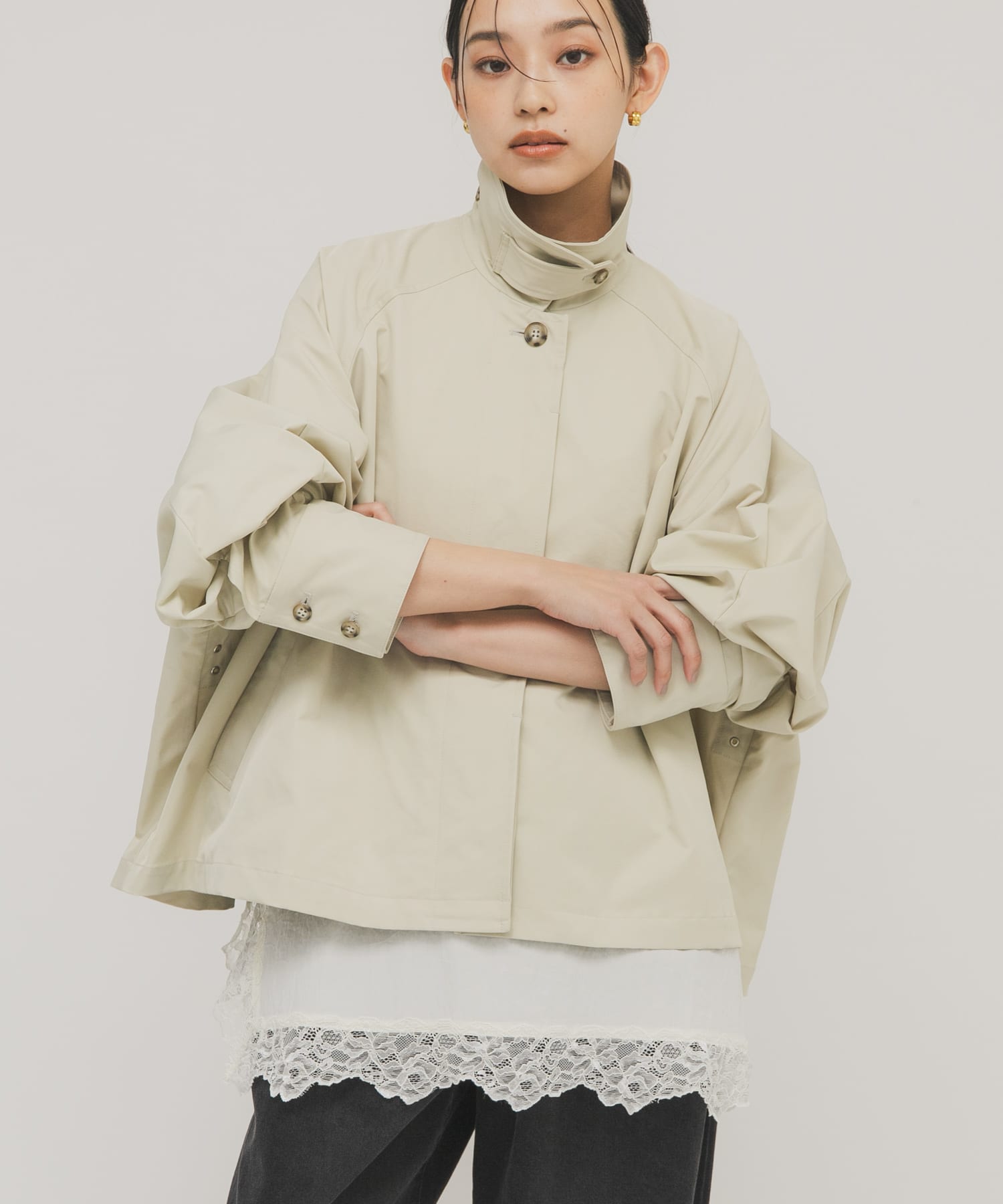 ステンカラーマントコート