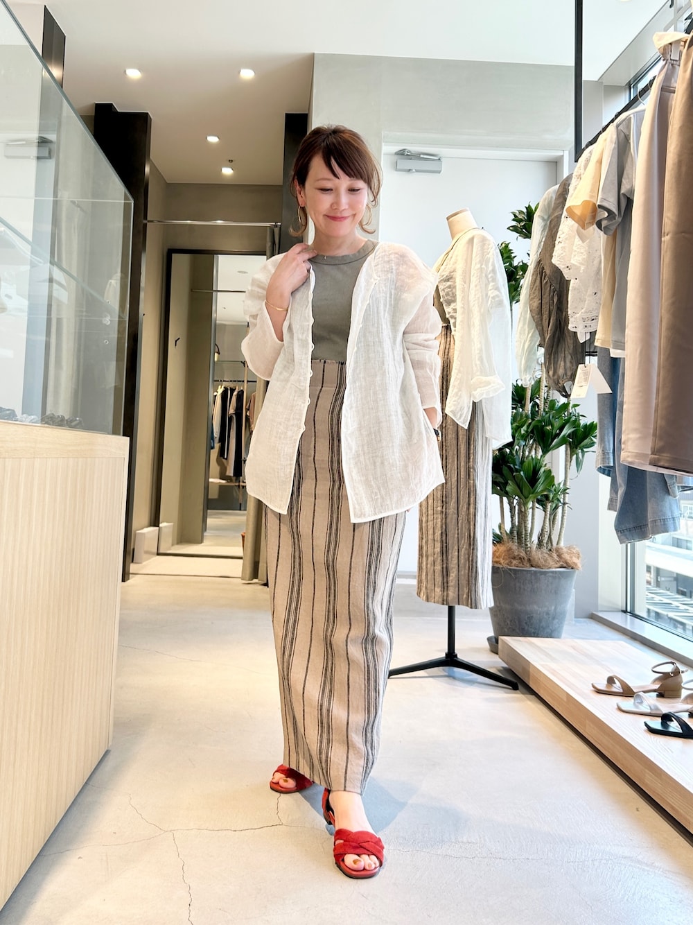 Tシャツやタンクにさらっと重ねるだけでも雰囲気が出て、普段のスタイリングが一気にこなれた印象に変わります。カーディガン感覚で使える軽さです♪