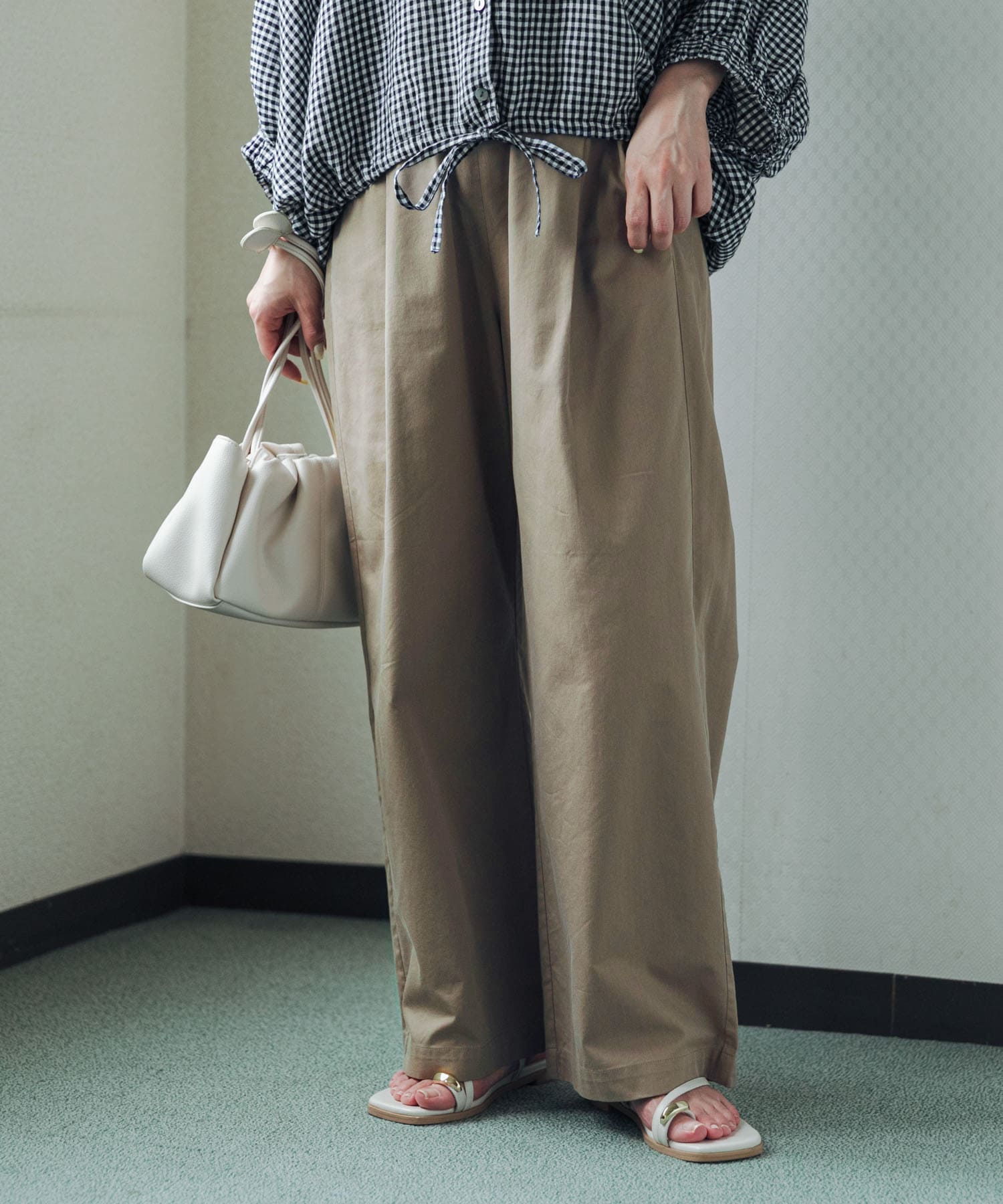 ウエストは後ろゴムで楽に履けるのに、フロントはきれい見えする仕様なので、ラフになりすぎないのも◎。
