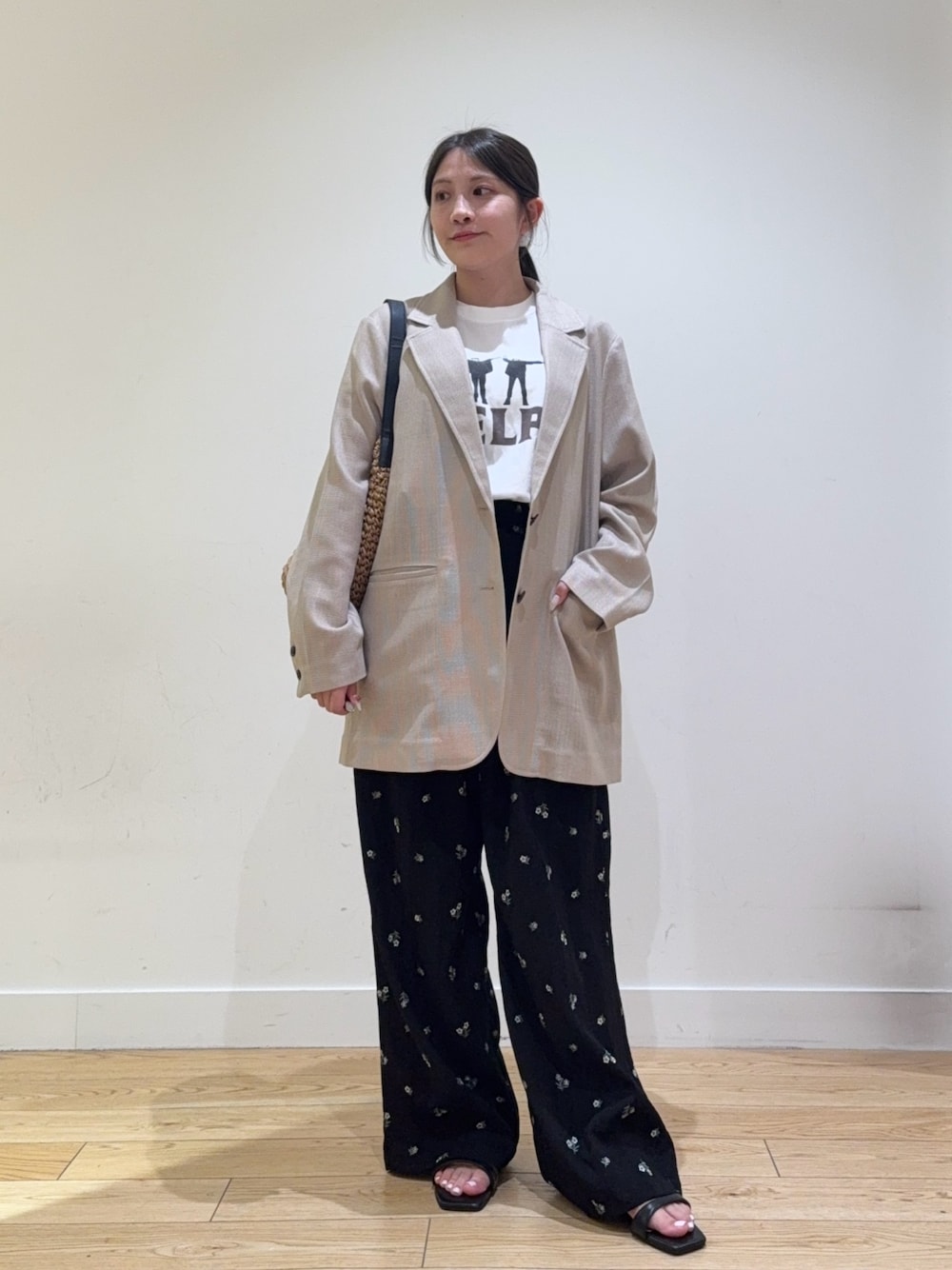 フラワー刺繍イージーパンツは、ウエストがゴムなので快適に履けて、コーディネートに季節感が出るのでおすすめです!