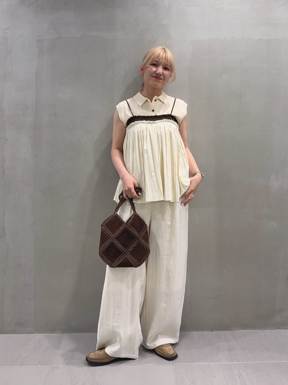 インナーに来ているのは毎年大人気のスリーブレスニットシャツで、今年も早速人気です☺️