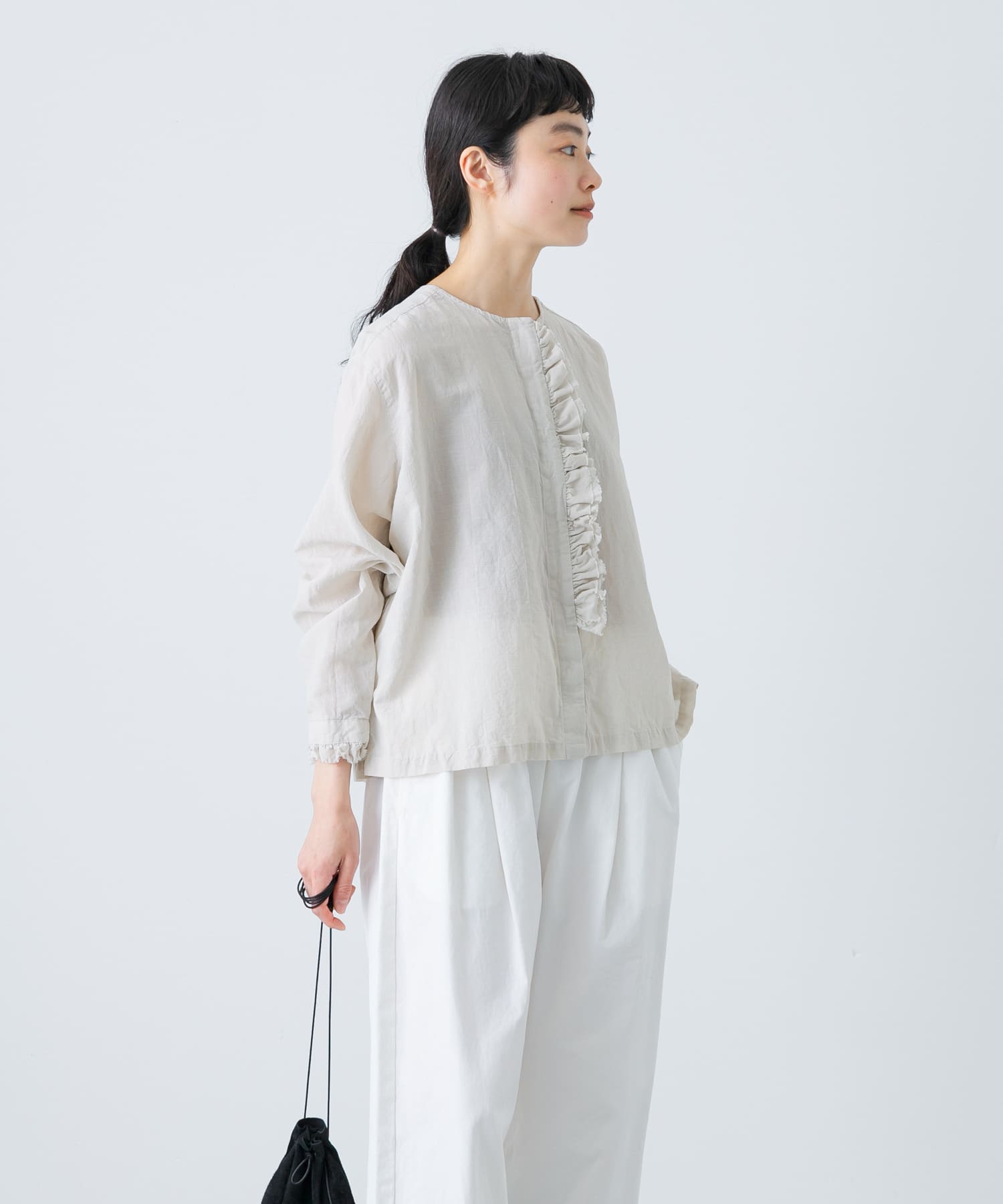コットンリネンワッシャーフリルブラウス